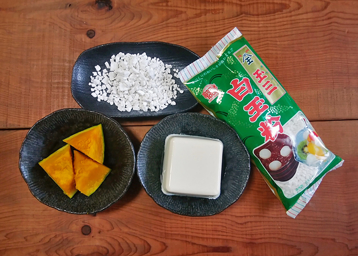 量の目安は、白玉粉:かぼちゃ+豆腐=1:1。