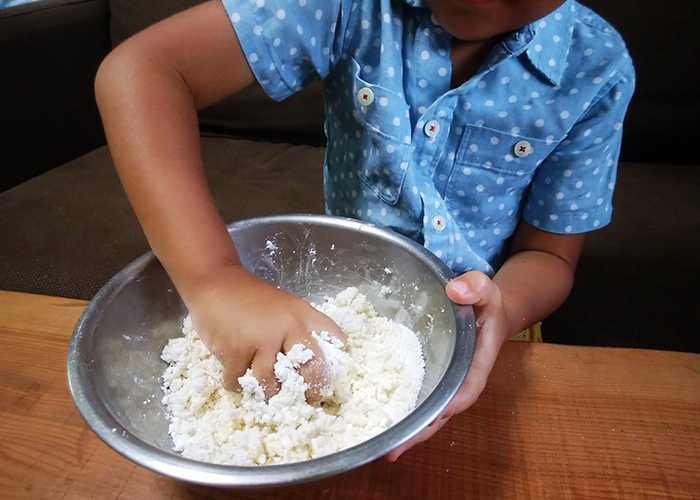 後半の捏ねは少し力がいるので、大人が手伝ってあげてください。
