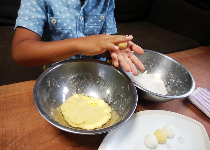 生地を一口大にちぎり、丸く形を作ります。