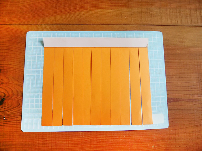 横に谷折りにしたら、その部分に両面テープを貼っておきます。