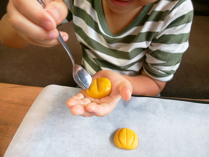 ★お手伝いポイント1:丸めて、かぼちゃの模様をつける