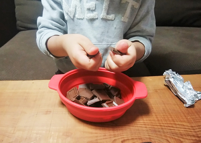 ★お手伝いポイント1 チョコレートを割る