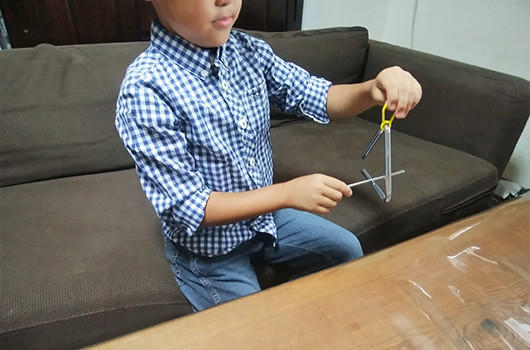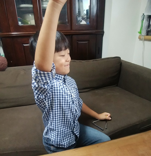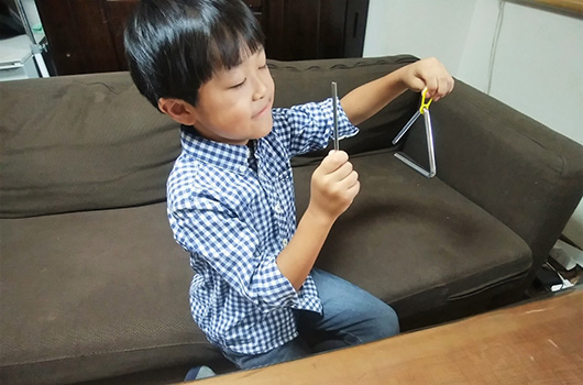 息子用に小さなトライアングルを用意してあげたら大喜び。