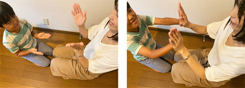 1.親子で並んで(または向かい合って)立ちます。