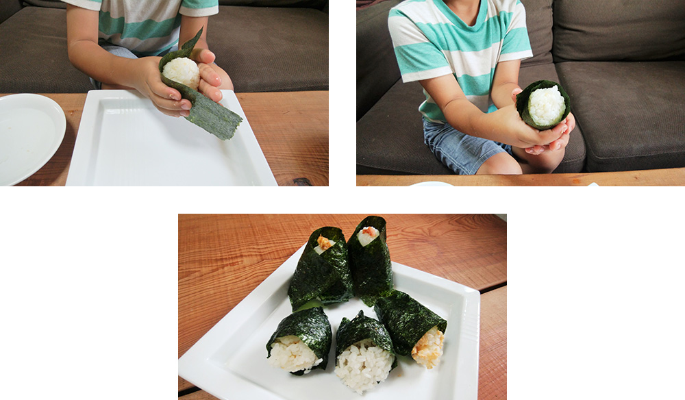 いつもササッと何も考えずににぎっている(=習慣化している)のですが、今回は、子どもと一緒にワイワイ笑いながら作ったり、この具材はどんな味がするのかな?と考えながら作ったりすることで、改めて、新鮮な気持ちで作ることができました。