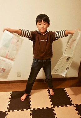 私は新聞紙1枚分、息子はその半分のサイズでチャレンジしました。