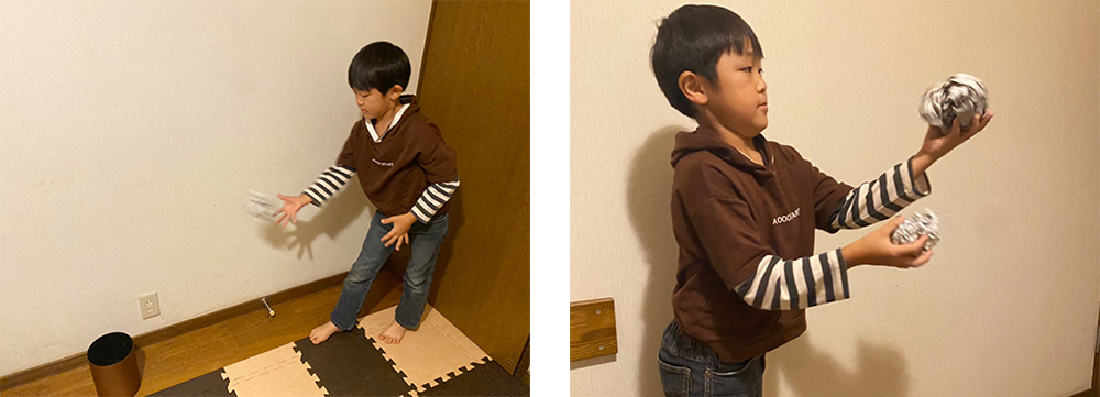 人はさまざまな情報を五感でインプットしていますが、その8割は目(視覚)から取り入れています。ペーパーボールを投げたり、お手玉をして遊んだりすると、眼球を動かしてボールを目で追いかけるので「視覚系脳番地」が強化されます。