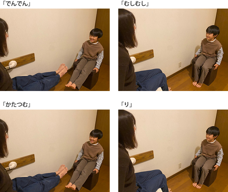 ・立った状態でもできますが、おうちの方ができるだけお子さんと目線を合わせられるように、座った状態で行うのがおすすめです。