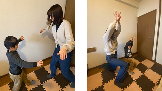 何度かやって慣れてくると、息子は、飛びまわるときに体を左右に揺らしたり、羽を閉じているときに指をひらひらしたりと、オリジナルの動きを加えてアレンジしていました。