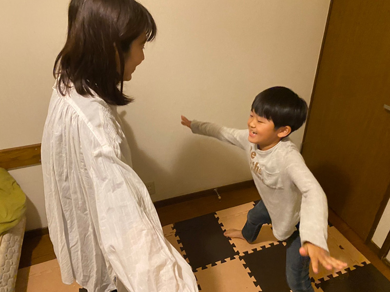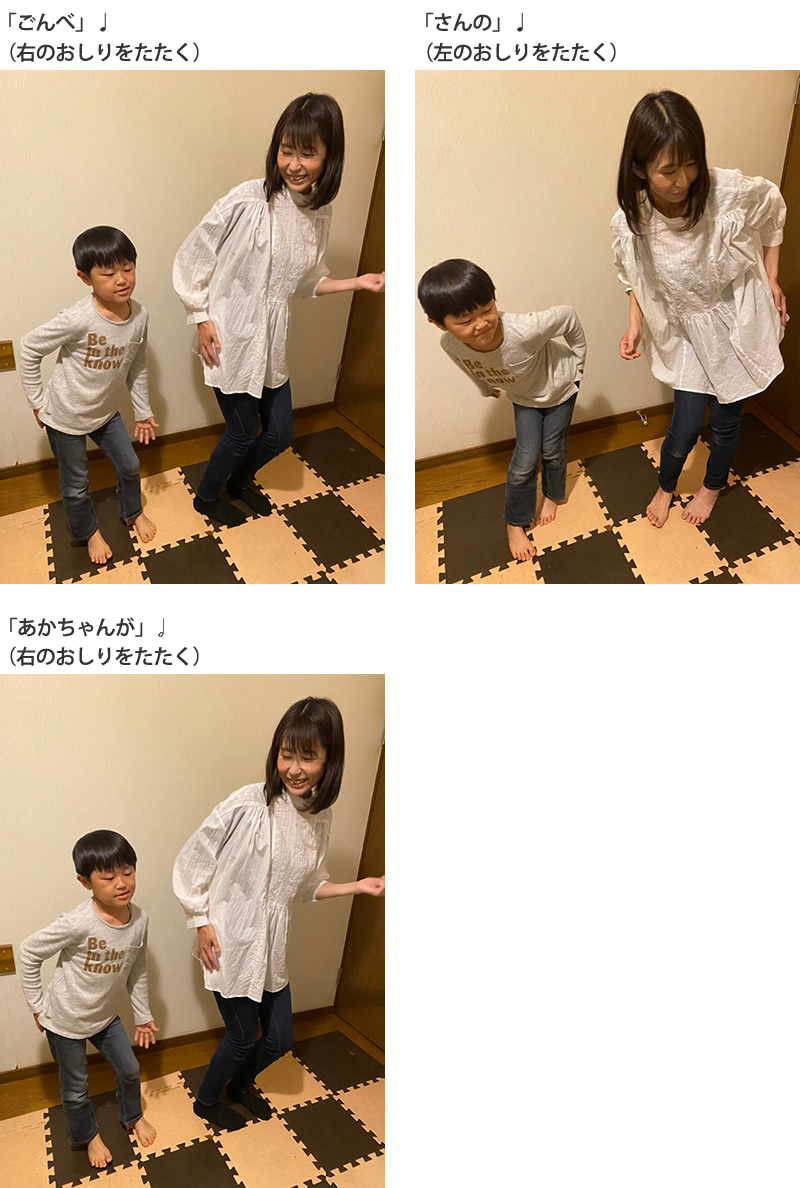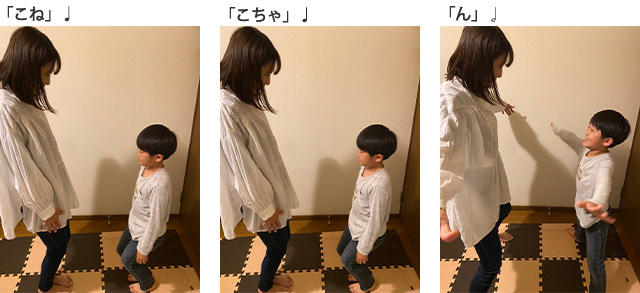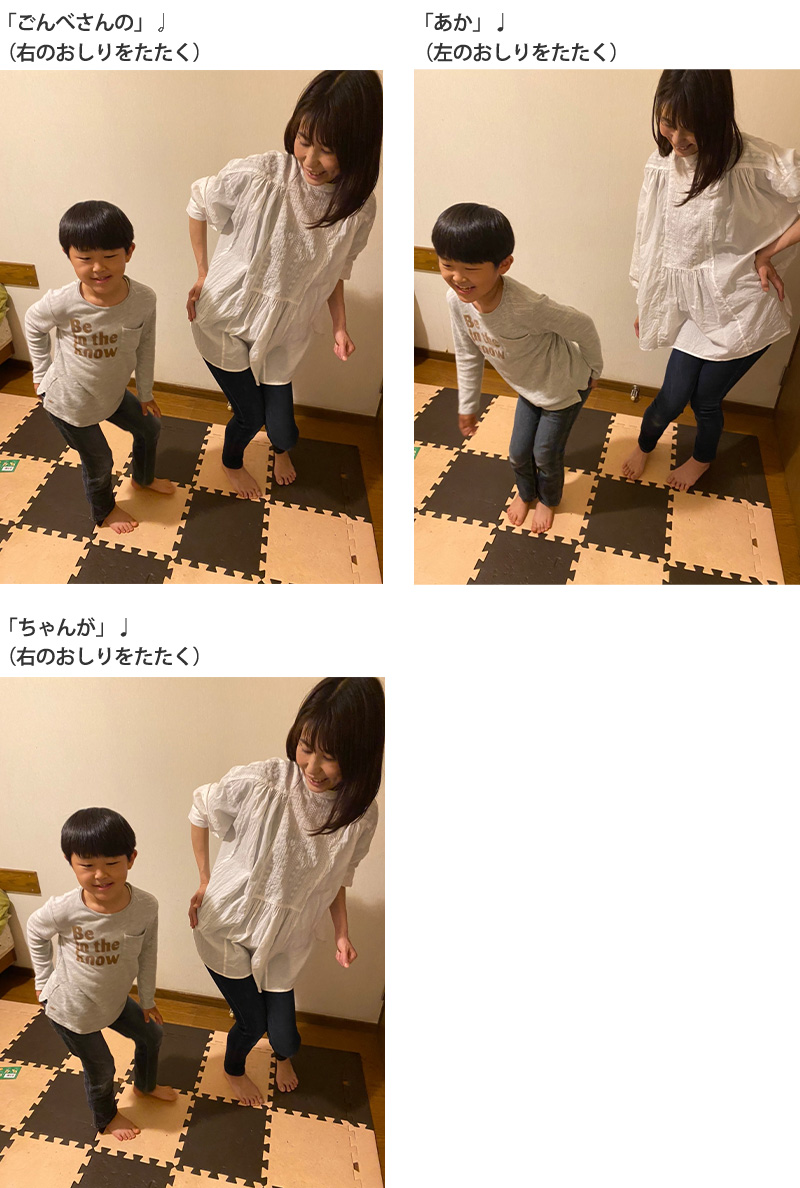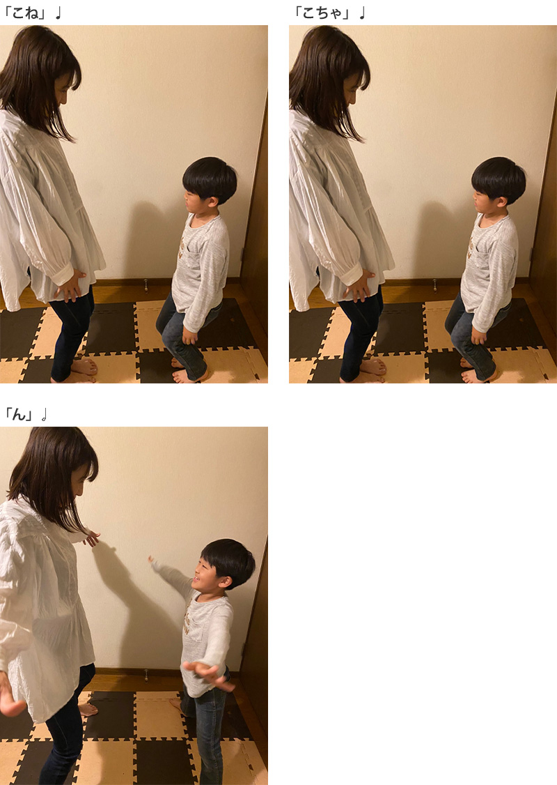 最初に私がお手本をやって見せたら、おしりをフリフリするユーモラスな動きに息子は大笑い!