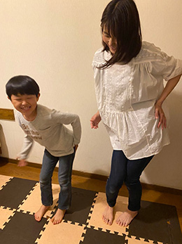 はじめはタイミングを合わせるのがむずかしかったのですが、何度かやるうちに親子で息を合わせてジャンプできるようになりました。