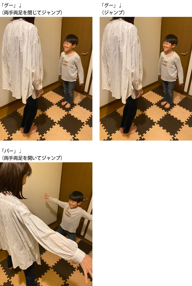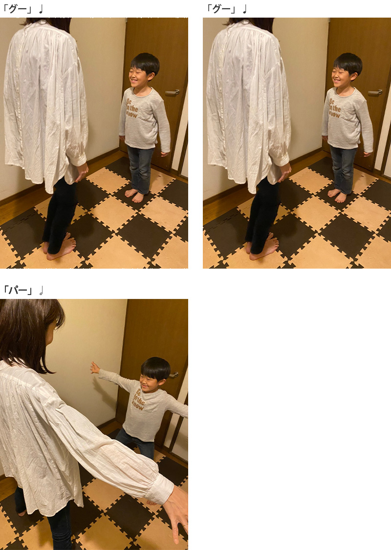 慣れてきたら、リズムを変えたり、「グー」「パー」の順番を入れ替えたりしても楽しそうです♪