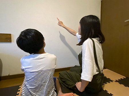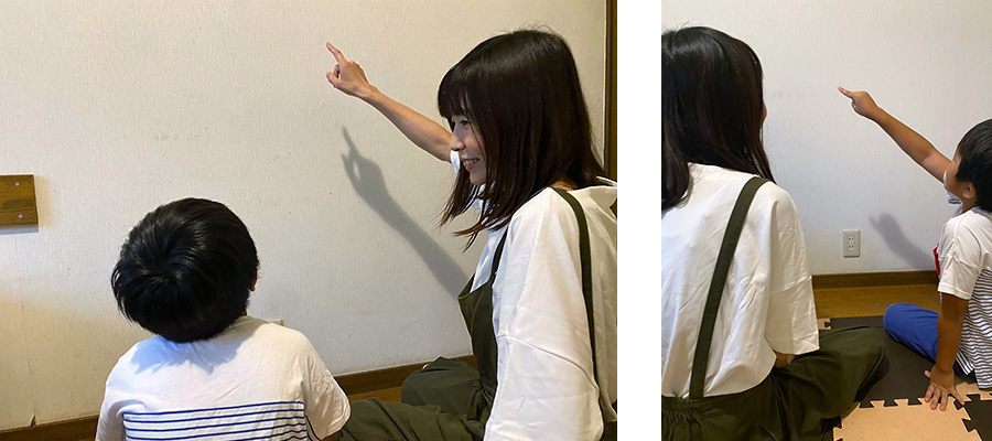 2.やり方がわかったら、次はお子さんが空中に文字を書き、お父さんやお母さんが当ててみましょう。