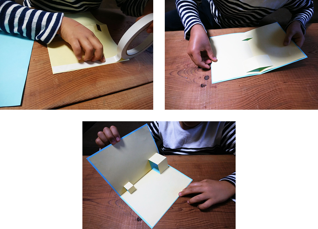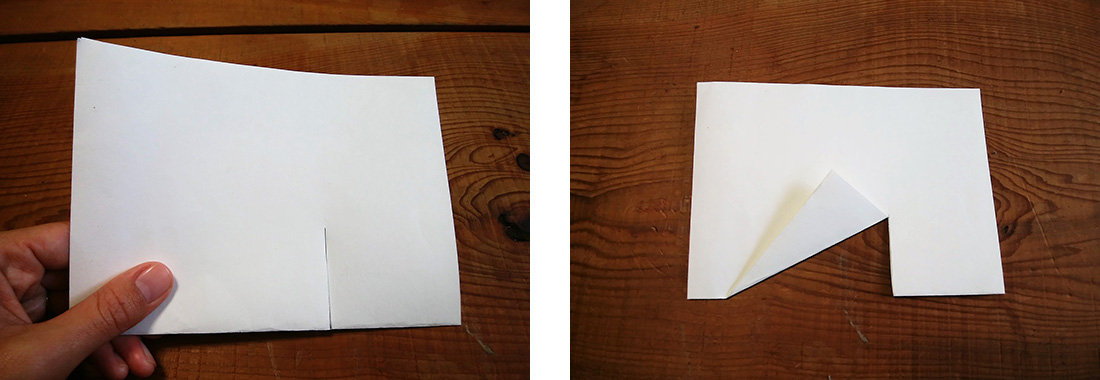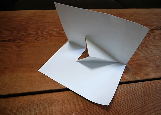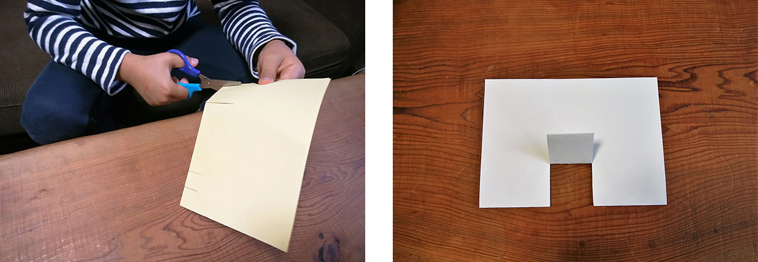 はさみで切り込みを入れて内側に折るだけ、と仕掛けはとても簡単なのですが、