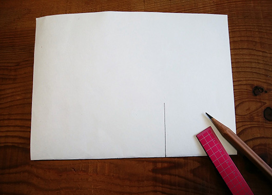 2.内側の紙を半分に折り、折っている側から縦に線を2本引きます。
