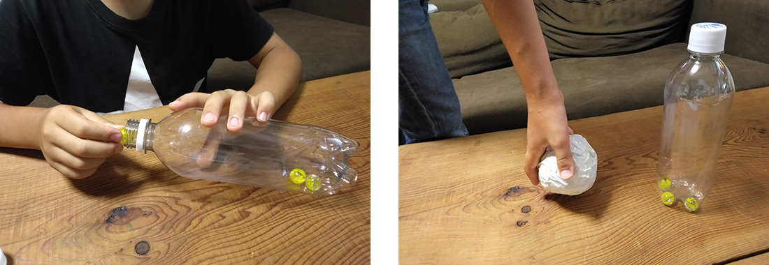 そこで今回は、ペットボトルにビー玉を入れて一工夫。
