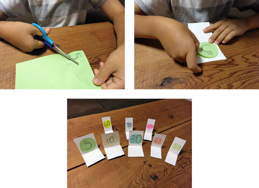 5.的になるところに、絵を描いた折り紙をのりで貼ります。