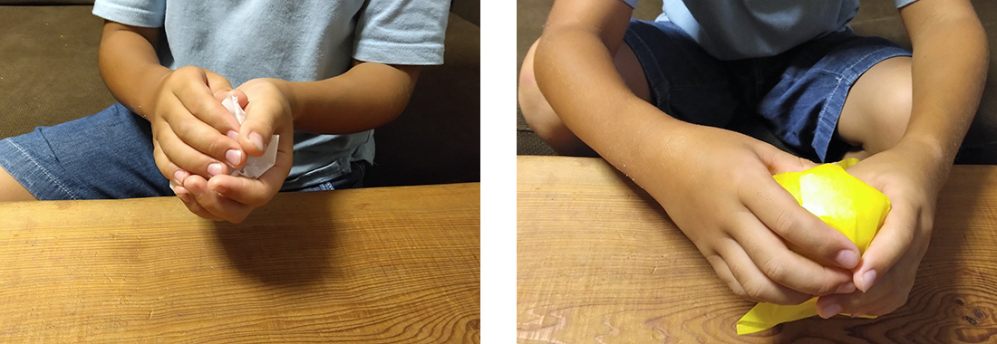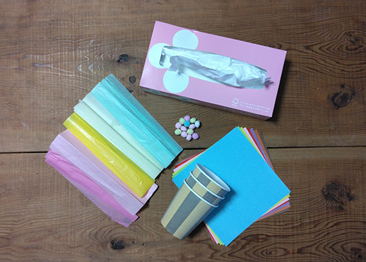 1.ティッシュを丸め、お花紙でふんわりと包みます。