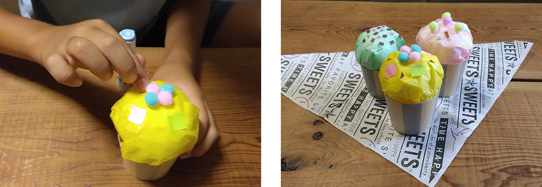 4.カップケーキの土台に、トッピングを貼り付けたらできあがり!