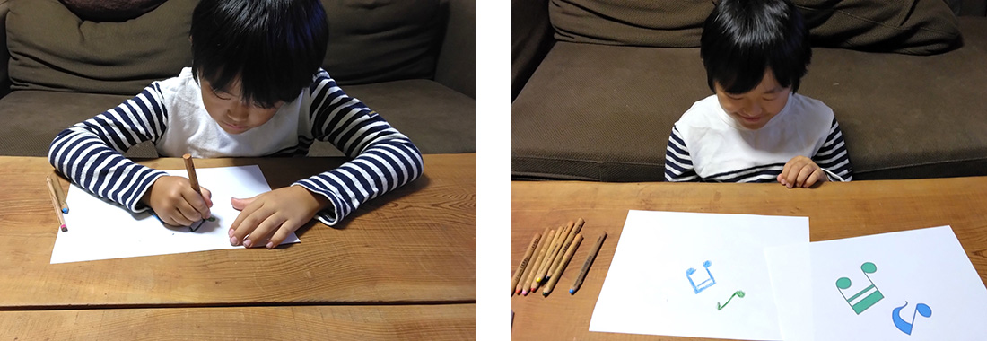 3.30秒たったら、見本を隠して、覚えた図柄を紙に描きます。