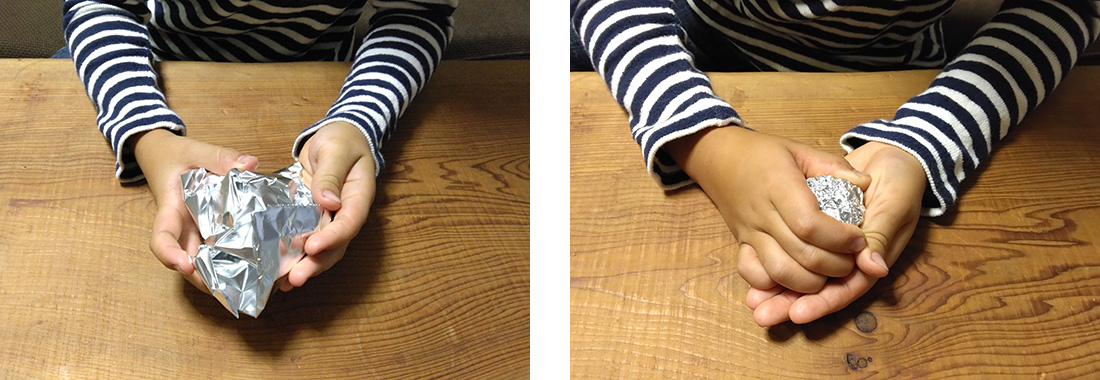 3.アルミホイルをギュッと丸めて玉にします。