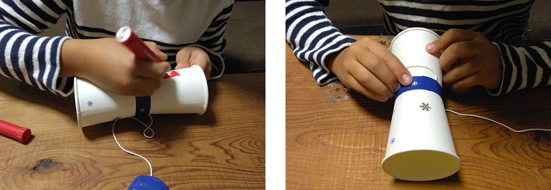 紙コップの底を合わせるのに少し苦戦したくらいで、あとはほとんど一人で作り上げることができました。
