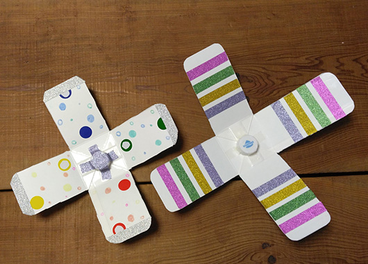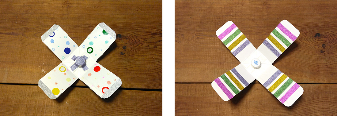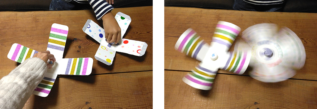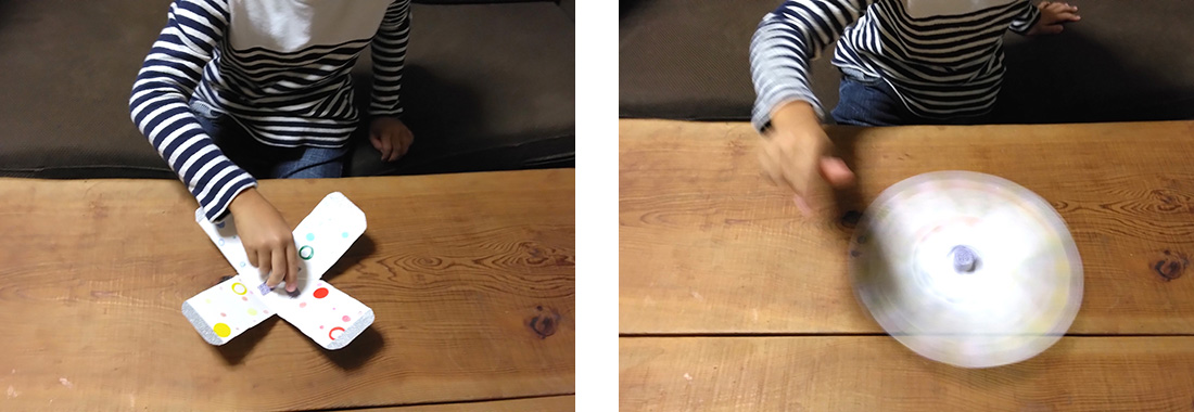 羽根の長さは、息子10cm、私13cmで作ってみましたが、短いほうがクルクルと長いあいだ回り続けていました。