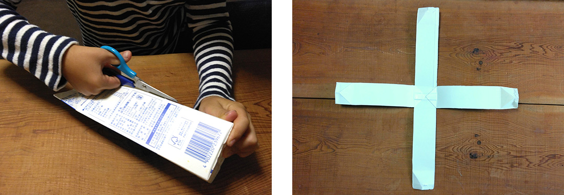 牛乳パックを切り開く部分だけは力が必要なので、保護者の方が手伝ってあげるとスムーズにできると思います。
