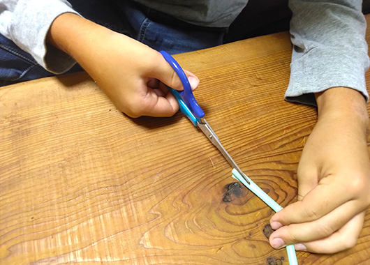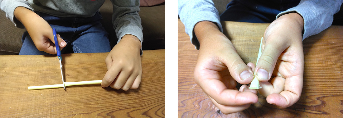 4.2本目のストローの先に、はさみで3cmほどの切り込みを4本入れます。