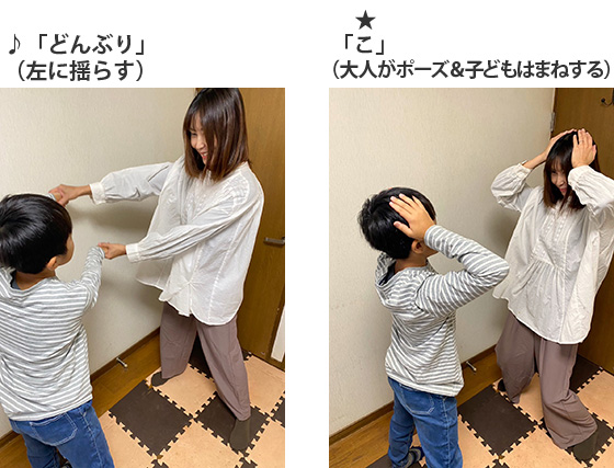 も同様に行い、★部分でおうちの方がポーズを取り、お子さんがそれをまねします。