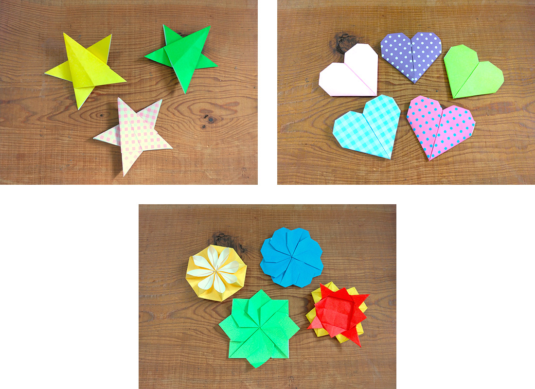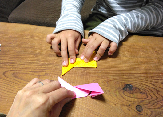 3.色違いのものを一緒に折ったり、協力して同じ種類のものをたくさん作ったり、親子でコミュニケーションをとりながら楽しめるとGood。