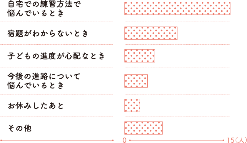 ダントツは自宅での練習方法。続いて宿題についてと、やはり先生に聞きたいのは、自宅での取り組み方に関して、という結果に。