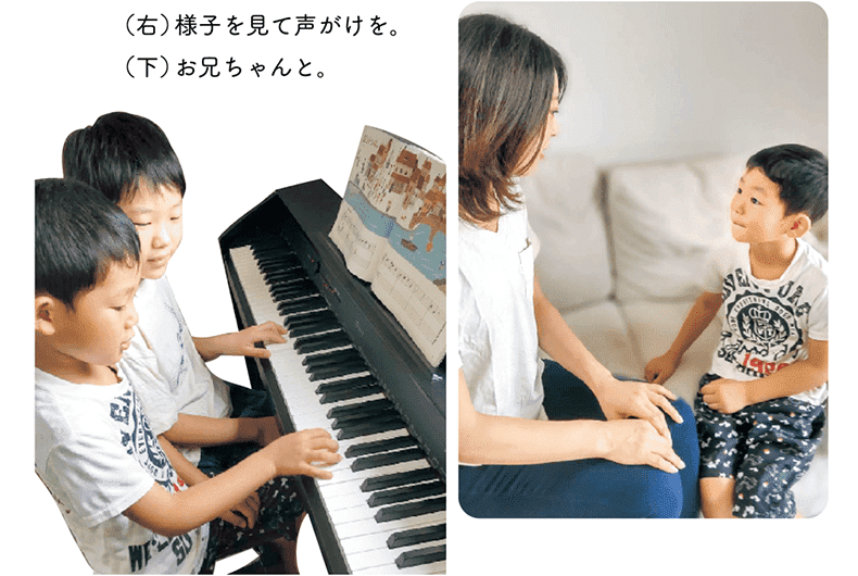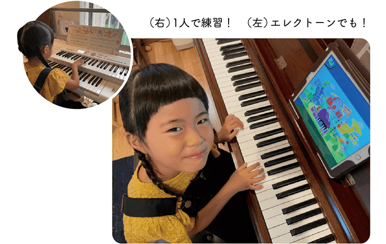 お兄ちゃんも習ってるので、どちらかが練習を始めると片方もやる気が出るので、その日の子どもたちの様子を見て、弾いてくれそうな方に声かけをしたりしています。